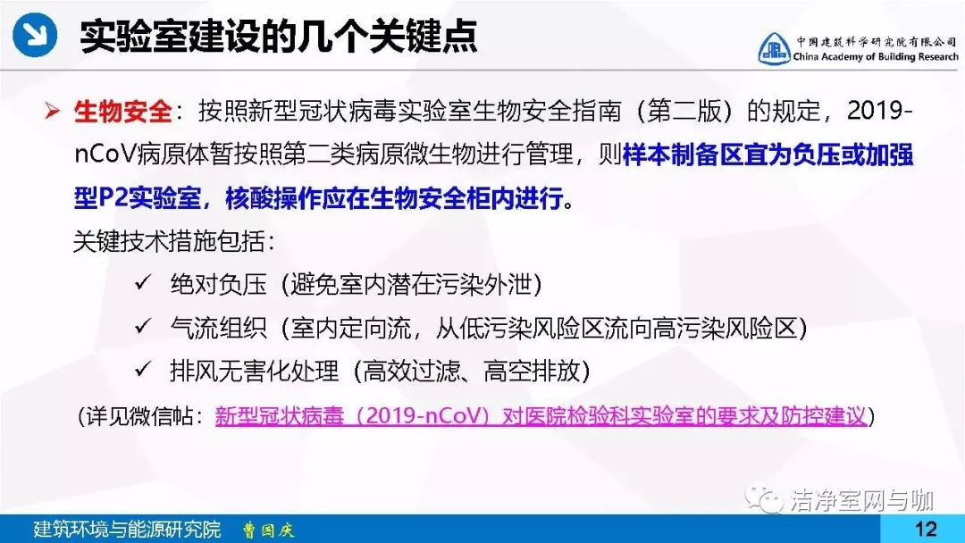 因医院、实验室、药厂等领域检测验收及设计咨询等业务关系,笔者所在研究团队长期与国家及各省市疾控中心、医院、病原微生物研究科研院所接触,他们正是这次疫情防控冲在第一线的勇士。这段时间以来,我们团队不断接到来自一线工作者的来电、来信咨询,就比较迫切的问题交换意见并给出建议,部分相关内容已陆续撰写短文予以公开发布,引起广泛关注。这些内容均来自第一线的实际需求,所以具有一定时效性、可操作性。